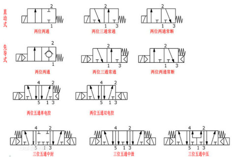电磁阀图形符号的含义一般如下: