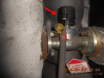 下图中箭头所指的是电磁阀,用于控制汽机低压后缸喷水系统气流通道的通、断。